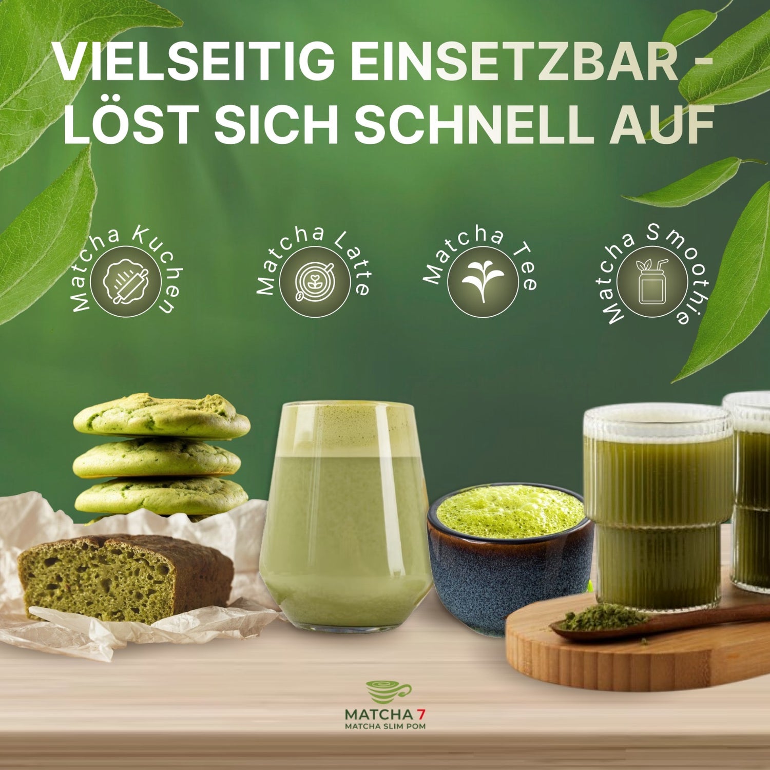 Matcha verleiht deinem Alltag Vielfalt: Ob cremiger Matcha Latte, wohltuender Matcha Tee, erfrischender Smoothie oder saftiger Matcha Kuchen – das grüne Superfood passt immer!